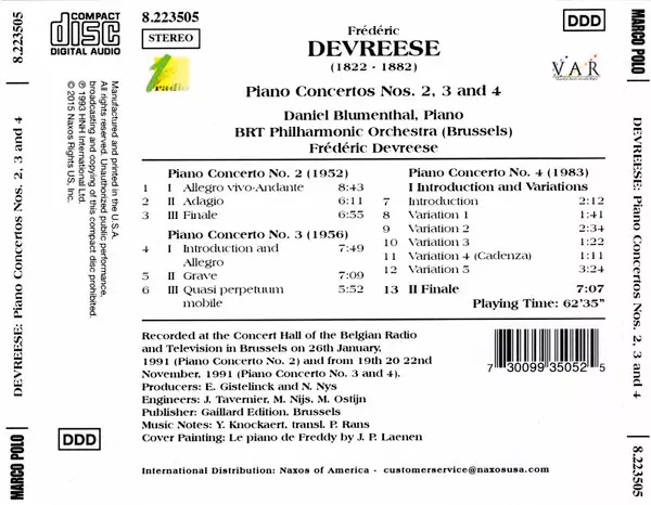 | Artista | Belgian Radio And Television Philharmonic Orchestra | Daniel Blumenthal | Frederik Devreese |