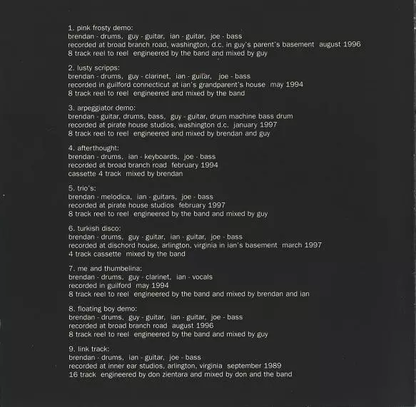Bass Joe Lally | Clarinet Guy Picciotto | Drums Brendan Canty | Engineer, Mixed By Fugazi | Guitar Ian MacKaye