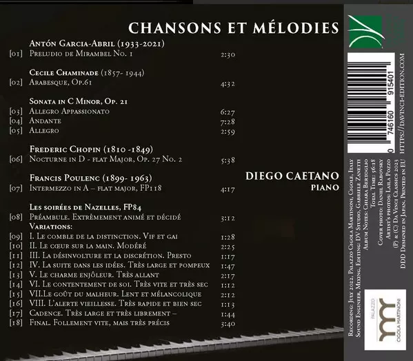 | Artista | Frédéric Chopin | Francis Poulenc | Cecile Chaminade | Antón García Abril | Diego Caetano |