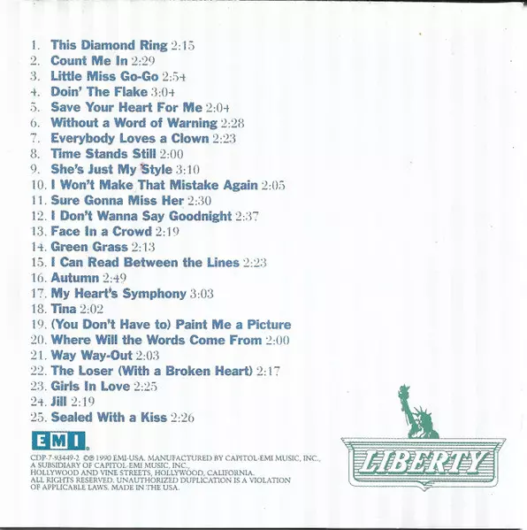 Gary Lewis & The Playboys: The Legendary Masters Series versión en CD en remasterizado edición. Esta edición en concreto se lanzó en EE.UU. en la editorial EMI USA el día 16. marzo 1990. Álbum puede clasificarse como género Rock.