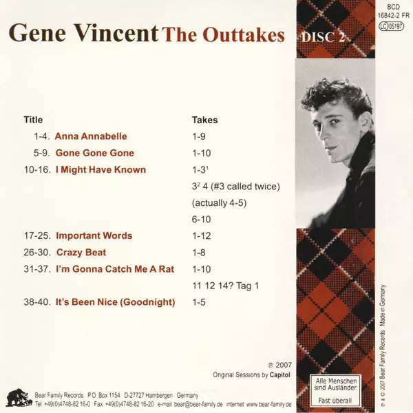 | Bass Cliff Hils | Drums Allen Breneman | Guitar Allan Reuss | Lead Guitar Graham "Scotty" Turnbull | Leader, Contractor Jimmie Haskell | Piano Raymond Johnson (10) | Producer Karl Engemann | Vocals Gene Vincent | Written-By Jack Rhodes, Johnny Fallin | ||