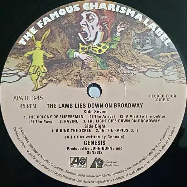 | Editorial | Analogue Productions | Atlantic | Charisma |