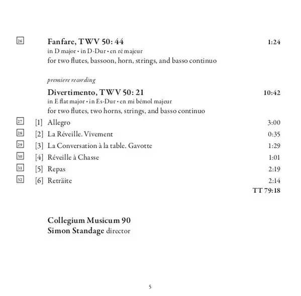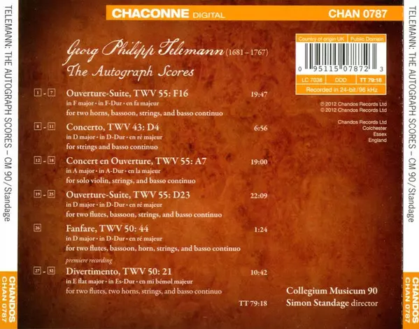 | Artista | Georg Philipp Telemann | Collegium Musicum 90 | Simon Standage |
