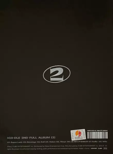 (G)I-DLE: 2 versión en CD en estándar edición. Esta edición en concreto se lanzó en Corea del Sur en la editorial Cube Entertainment en colaboración con Kakao Entertainment el día 9. febrero 2024. Álbum abarca todos los géneros Pop y K-pop.