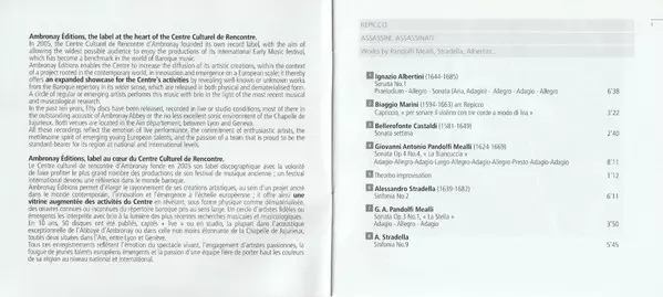 | Título | Repicco, Assassini, Assassinati - Works by Pandolfi Mealli, Stradella, Albertini... |