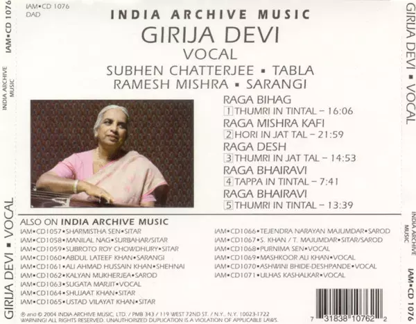 | Artista | Girija Devi | Ramesh Mishra | Subhen Chatterjee |
