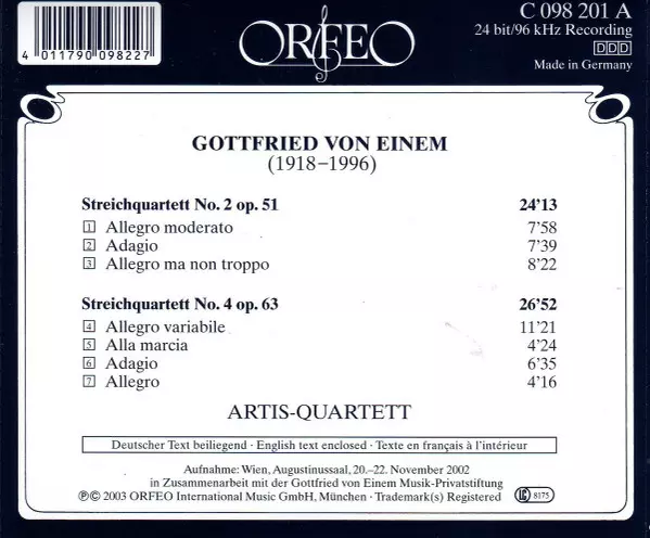 | Artista | Artis Quartet | Gottfried von Einem |