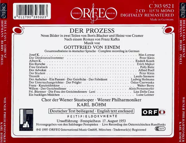 | Artista | Wiener Philharmoniker | Karl Böhm | Walter Berry | Lisa Della Casa | Alfred Poell | Gottfried von Einem | Max Lorenz | Ludwig Hofmann |