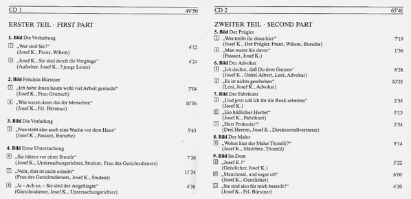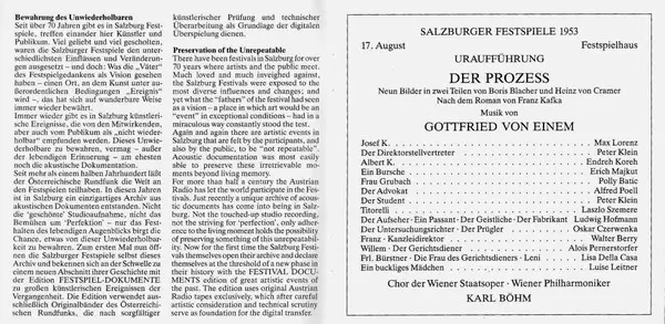 | Der Prozess Neun Bilder In Zwei Teilen Von Boris Blacher Und Heinz von Cramer Nach Dem Roman Von Franz Kafka | ||