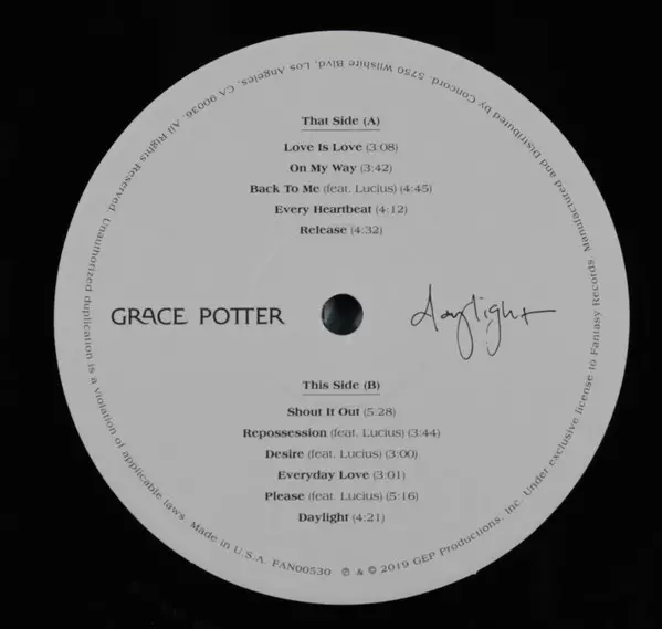 Grace Potter: Daylight versión en vinilo LP en estándar edición. Esta edición en concreto se lanzó en EE.UU. en la editorial Fantasy el día 8. noviembre 2019. Álbum abarca todos los géneros Rock y Alternative rock.