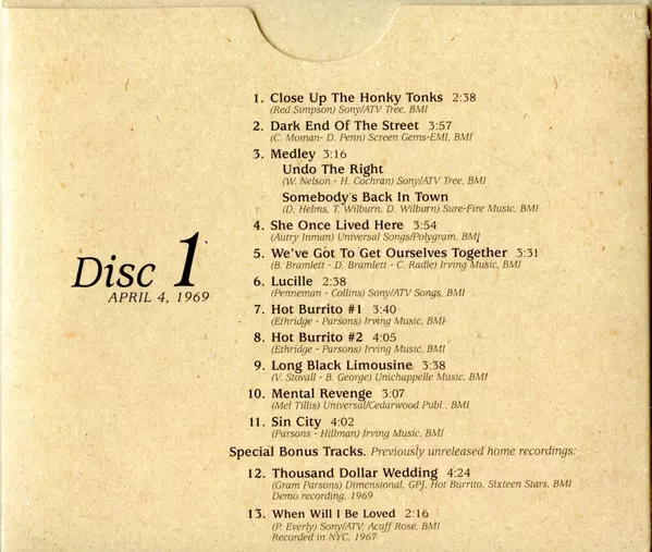 Gram Parsons Archives Vol 1 (Live At The Avalon Ballroom 1969) - CD