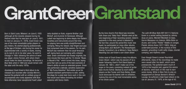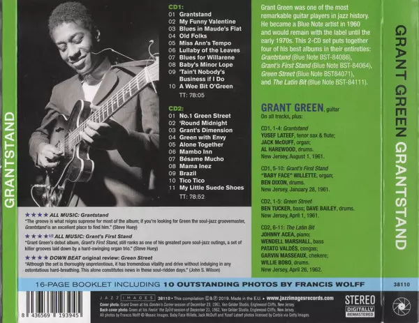 Grant Green: Grantstand LTD versión en 2CD en remasterizado de edición limitada edición. Esta edición en concreto se lanzó en Europa en la editorial Jazz Images el día 22. noviembre 2019. Álbum abarca todos los géneros Jazz y Hard Bop. Limited Edition.