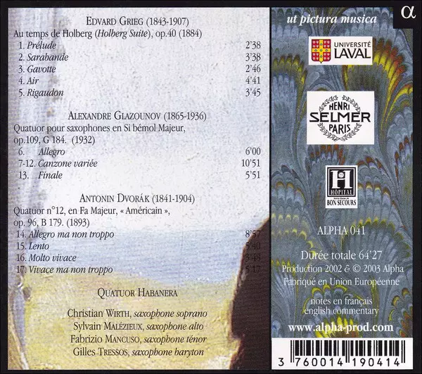 | Artista | Antonín Dvořák | Edvard Grieg | Alexander Glazunov | Quatuor Habanera |