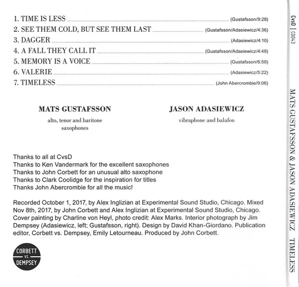 | Artista | Mats Gustafsson | Jason Adasiewicz |