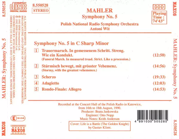| Symphony No. 5 In C Sharp Minor | 74:43 min |