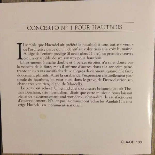| Concerto Pour Hautbois Et Orchestre N°1 En Si Bémol Majeur |