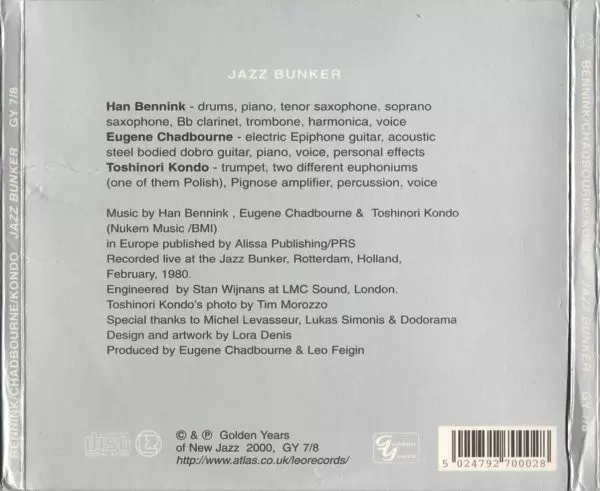 | Artista | Toshinori Kondo | Han Bennink | Eugene Chadbourne |