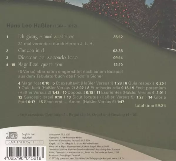 Título | Ich Gieng Einmal Spatieren - Tastenmusik von Hans Leo Haßler |
