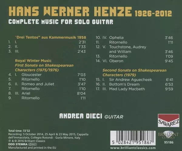 | Artista | Hans Werner Henze | Andrea Ferrario |