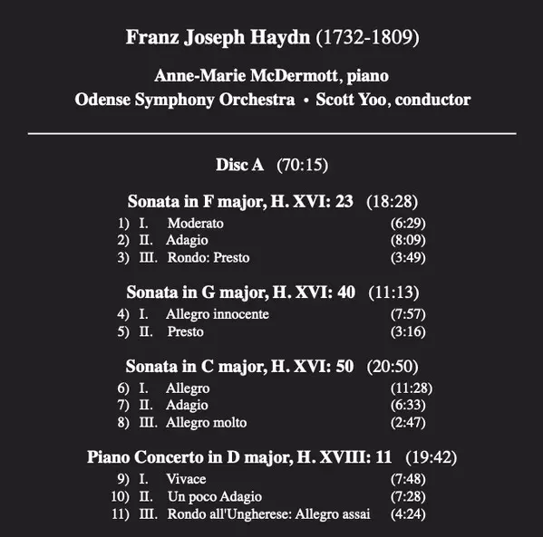 | Artista | Joseph Haydn | Odense Symfoniorkester | Anne-Marie McDermott | Scott Yoo |