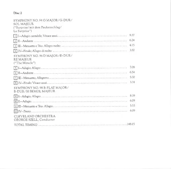 | Artista | Joseph Haydn | The Cleveland Orchestra | George Szell |