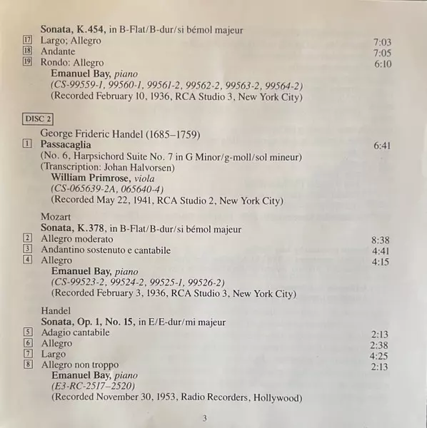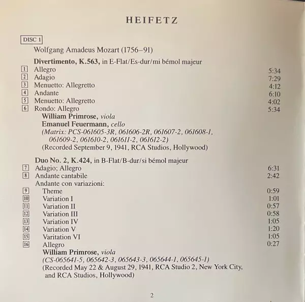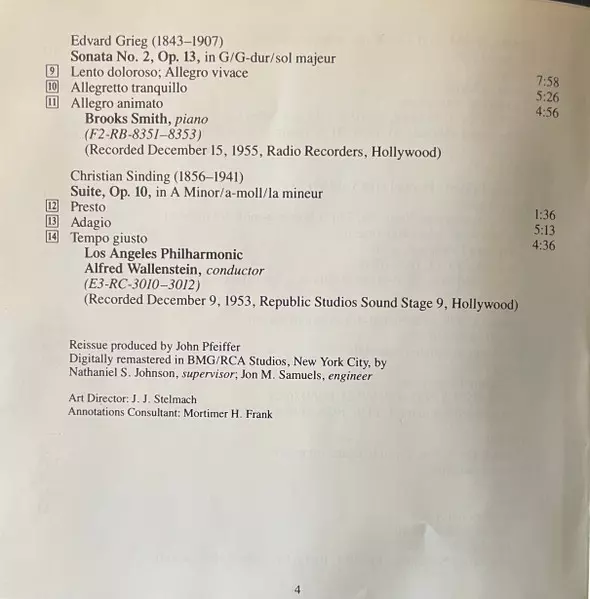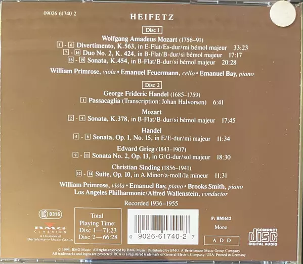 | Artista | Wolfgang Amadeus Mozart | Georg Friedrich Händel | Edvard Grieg | Jascha Heifetz | Christian Sinding |