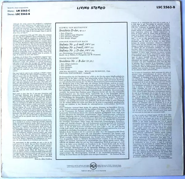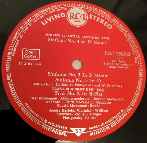 | Artista | Jascha Heifetz | Gregor Piatigorsky | William Primrose |