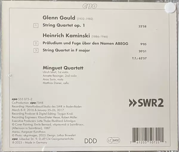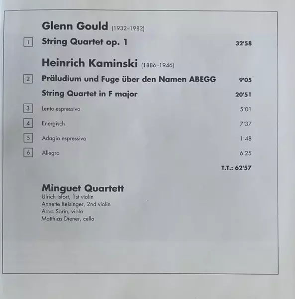 | Artista | Glenn Gould | Minguet Quartett | Heinrich Kaminski |