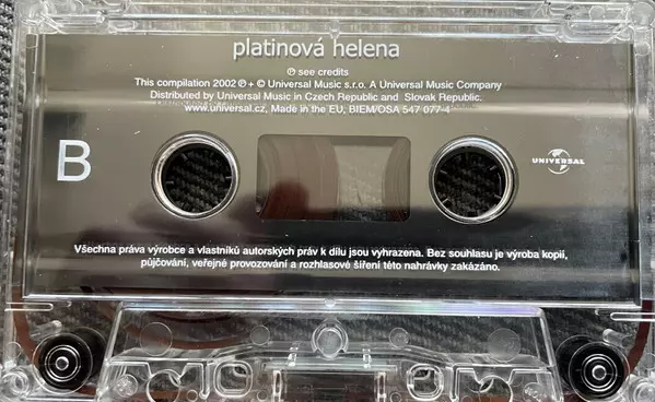 Helena Vondráčková: Platinová Helena versión en MC en estándar edición. Esta edición en concreto se lanzó en República Checa y Eslovaquia en la editorial Universal en colaboración con Bon Art Music el día 11. noviembre 2002. Álbum abarca todos los géneros Pop, Vocal, Balad, Disco y Clásicos checoslovacos.