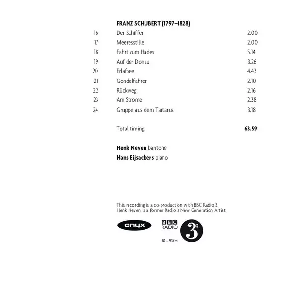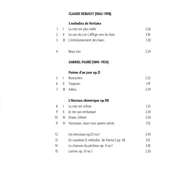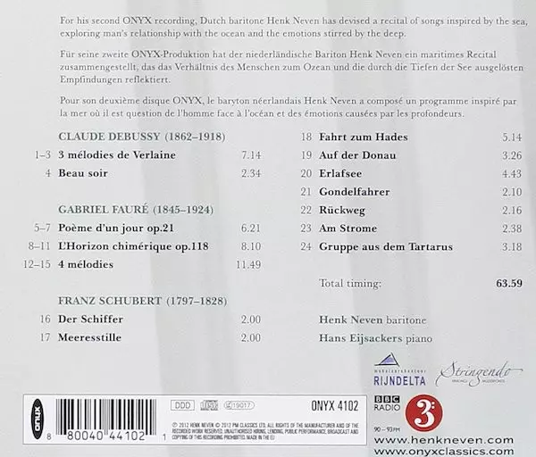 | Artista | Claude Debussy | Franz Schubert | Gabriel Fauré | Henk Neven | Hans Eijsackers |