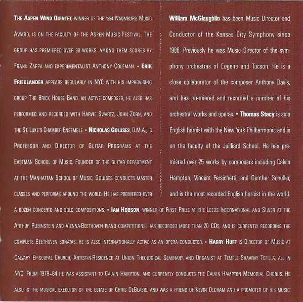 | Artista | Fred Hersch | Kevin Oldham | Lee Gannon | Chris DeBlasio | Calvin Hampton |