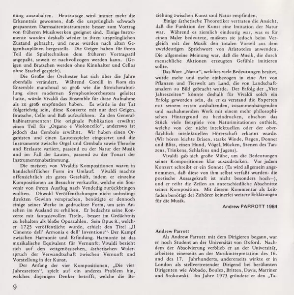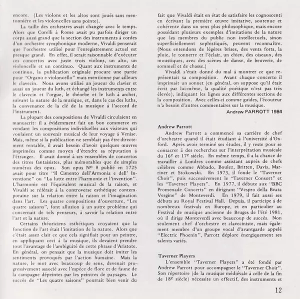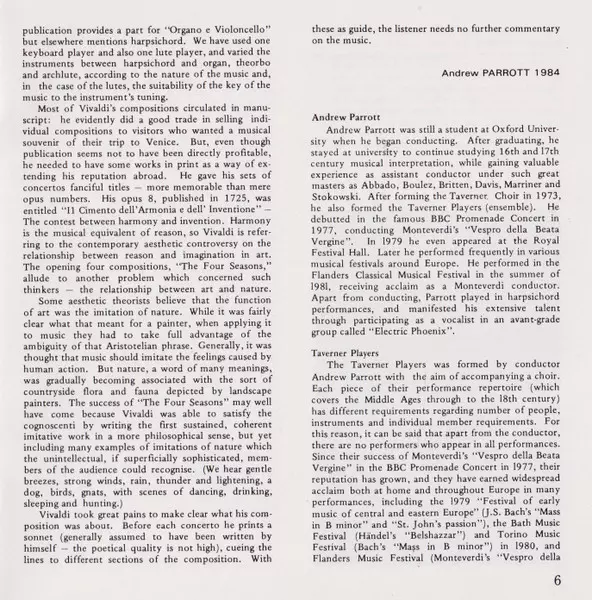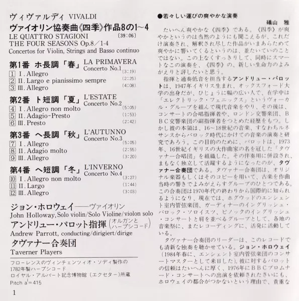 | Artista | Antonio Vivaldi | Andrew Parrott | Taverner Players | John Holloway |
