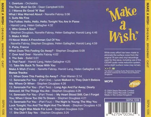 | Título | Make A Wish (Original Broadway Cast) |