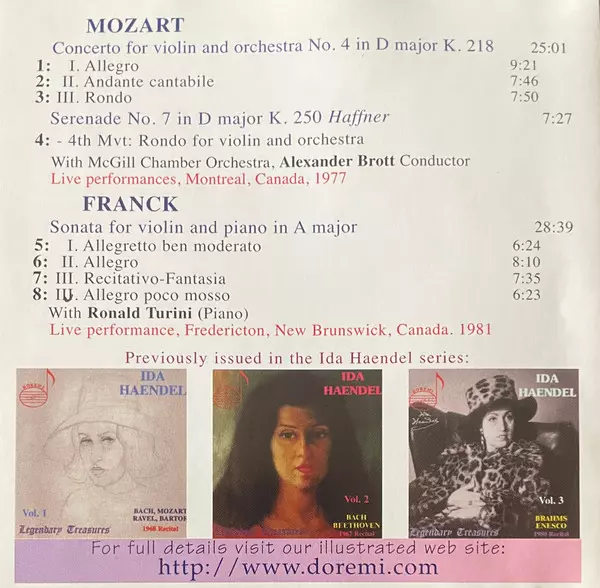 | Artista | Wolfgang Amadeus Mozart | Ida Haendel | César Franck |
