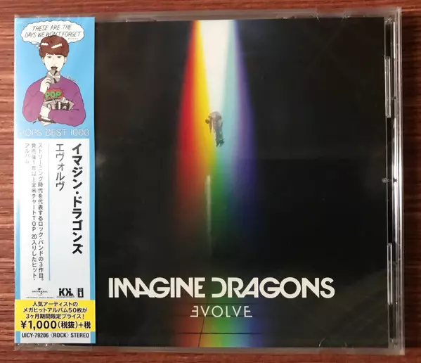 Imagine Dragons: Evolve LTD versión en CD en de edición limitada edición. Esta edición en concreto se lanzó en Japón en la editorial KIDinaKORNER en colaboración con Interscope Records el día 9. octubre 2020.
