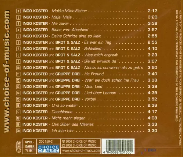 | 20 | Ingo Koster: Ich Lebe Hier | 3:30 min |