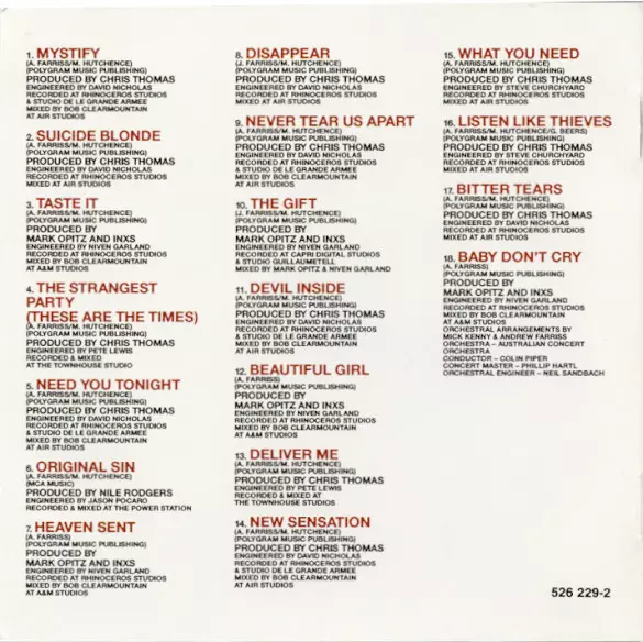 Arranged By [Orchestra] Andrew Farriss, Michael J. Kenny | Conductor [Orchestra] Colin Piper | Engineer [Orchestra] Neale Sandbach | Featuring [Concert Master] Phillip Hartl | Orchestra The Australian Concert Orchestra | Written-By Andrew Farriss