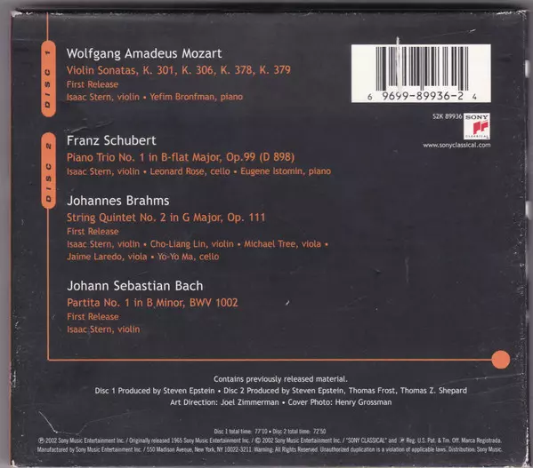 Cello Yo-Yo Ma | Viola Jaime Laredo, Michael Tree | Violin Cho-Liang Lin, Isaac Stern | ||