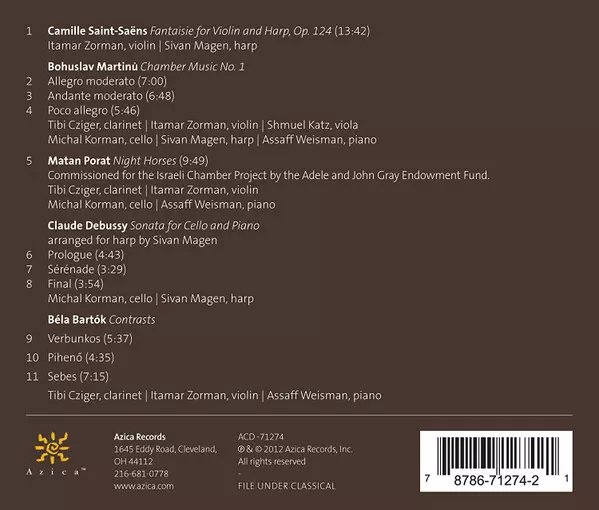 | Cello Michal Korman | Clarinet Tibi Cziger | Composed By Bohuslav Martinů | Harp Sivan Magen | Piano Assaff Weisman | Viola Shmuel Katz | Violin Itamar Zorman | |||