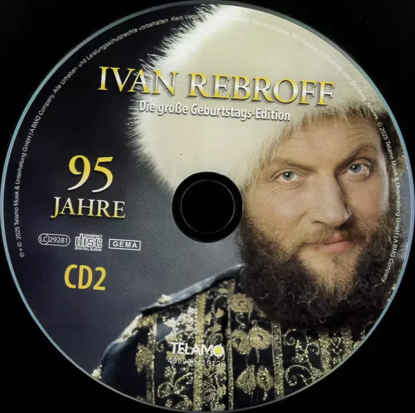 Ivan Rebroff: Die Große Geburtstag-Edition - 95 Jahre versión en 2CD en estándar edición. Esta edición en concreto se lanzó en Alemania en la editorial TELAMO del año 2025. Álbum puede clasificarse como género Folk, World, & Country.