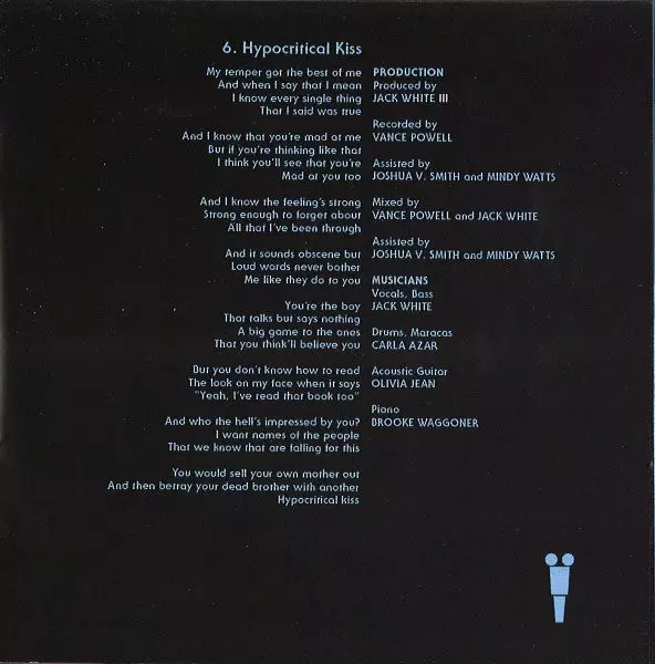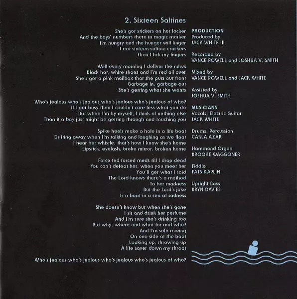 Backing Vocals Karen Elson, Laura Matula, Ruby Amanfu | Double Bass [Upright Bass], Handclaps Bryn Davies | Drums, Handclaps, Shaker Carla Azar | Electric Guitar, Handclaps Olivia Jean | Mixed By Jack White (2), Vance Powell | Producer Jack White (2) | Recorded By Vance Powell | Recorded By [Assisted By], Mixed By [Assisted By] Joshua V. Smith, Mindy Watts | Vocals, Electric Guitar [Electric Guitar Solo], Handclaps Jack White (2)
