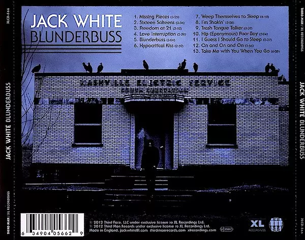 Jack White: Blunderbuss versión en CD en estándar edición. Esta edición en concreto se lanzó en Europa en la editorial XL Recordings en colaboración con Third Man Records el día 24. septiembre 2021.