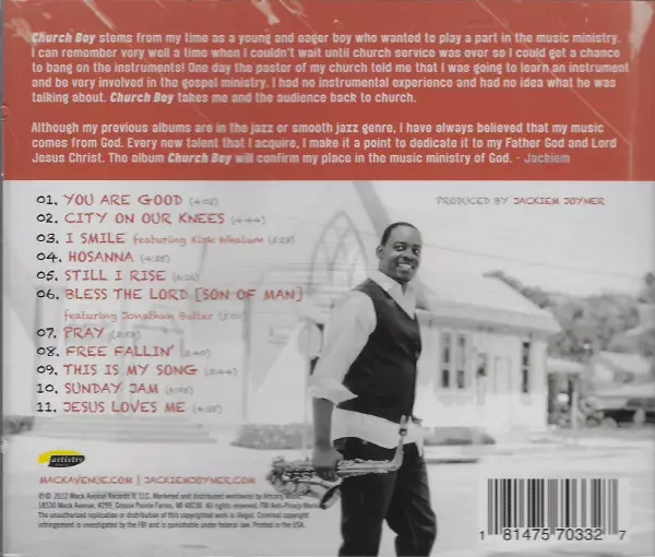 Jackiem Joyner: Church Boy versión en CD en estándar edición. Esta edición en concreto se lanzó en la editorial Artistry Music el día 23. octubre 2012. Álbum abarca todos los géneros Jazz, Funk / Soul, Gospel y Smooth Jazz.