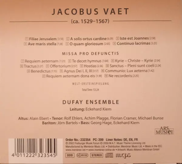 | Artista | Jacobus Vaet | Dufay Ensemble |