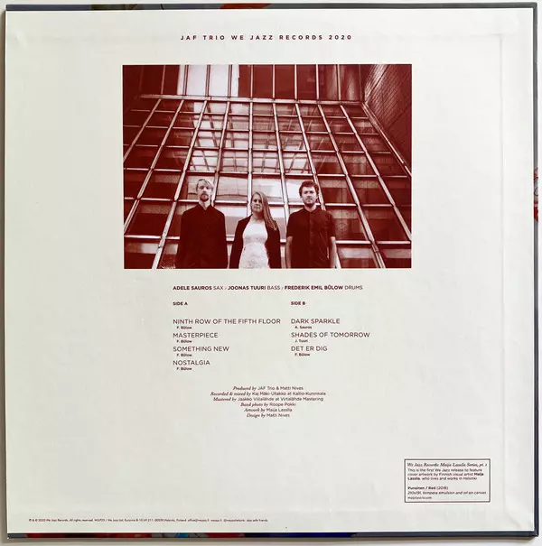 The trio of Adele Sauros , Joonas Tuuri and Frederik Emil Bülow . Debut album on We Jazz Records, July 2020.