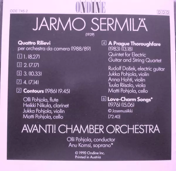 | Artista | Rudolf Dašek | Anu Komsi | Avanti! | Jarmo Sermilä | Olli Pohjola |