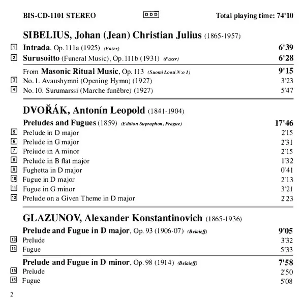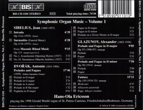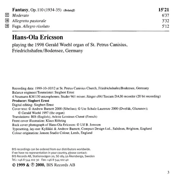 Artista | Antonín Dvořák | Jean Sibelius | Alexander Glazunov | Hans-Ola Ericsson |