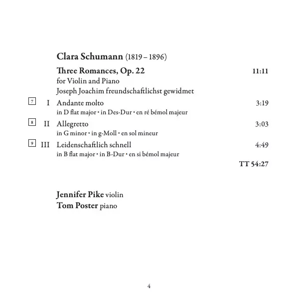 | Artista | Johannes Brahms | Robert Schumann | Clara Schumann | Tom Poster | Jennifer Pike |