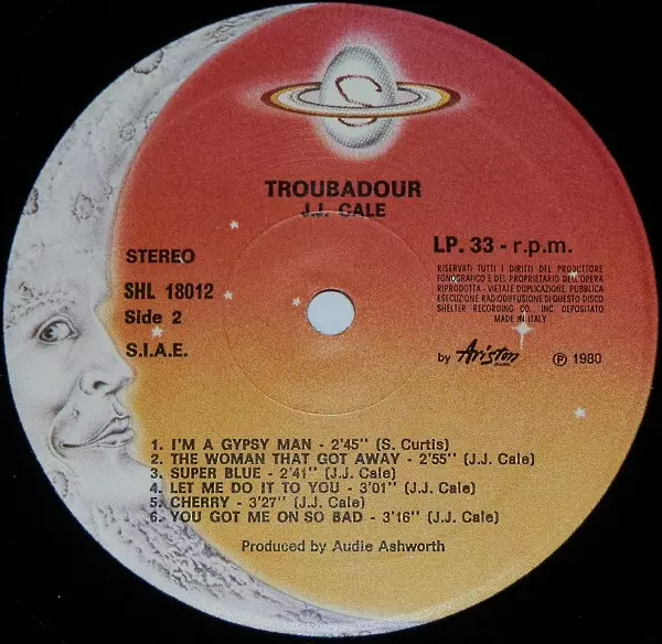 J.J. Cale: Troubadour versión en vinilo LP en estándar edición. Esta edición en concreto se lanzó en Italia en la editorial Shelter Records del año 1980. Álbum abarca todos los géneros Rock, Blues, Folk Rock y Blues-Rock. Broad Shoulders Vinyl.