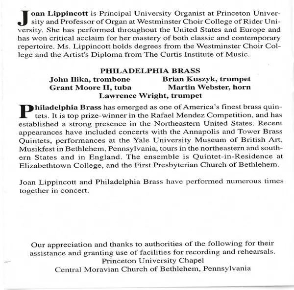 | Artista | Joan Lippincott | The Philadelphia Brass |